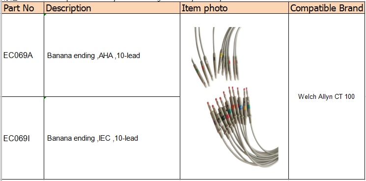 Portàtils portàtils ecgables Welch Allyn CT 100 ecg, de 10 ploms, connecten el cable EKG