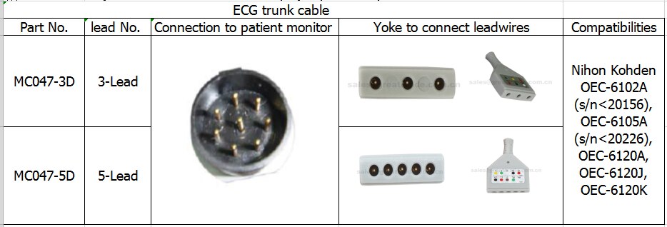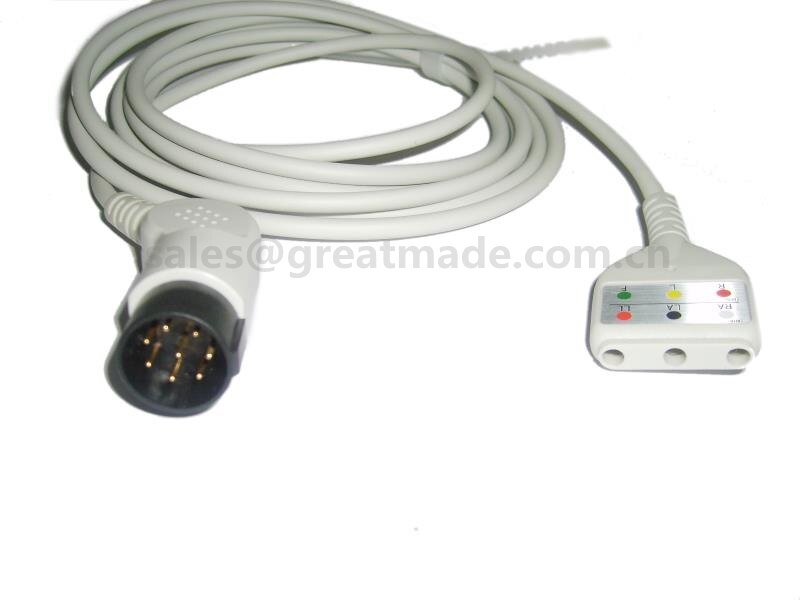 Compatible amb cable de Nihon Kohden ECG, 8 pines, dinar Yoke, 3 plom , OEC-6102A