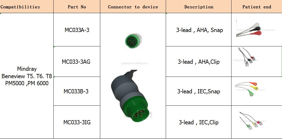 Cable ECG Mindray 12pin d'una peça amb cables de plom, 3-plombs, 5ld, ajustable